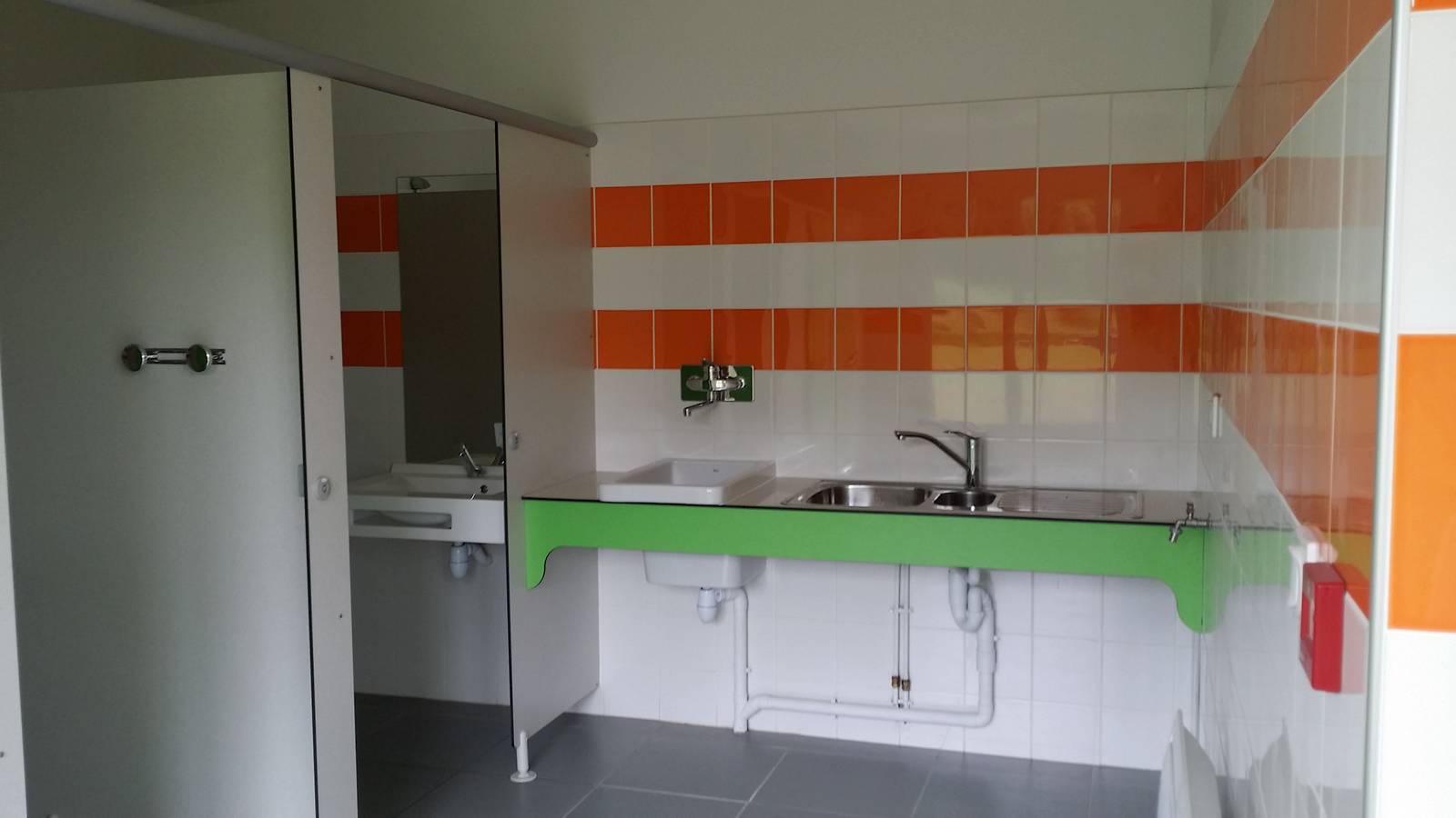 There are a playground for children, a Baby changing table, and a Washing machine. The toilets are heated and adapted to people with reduced mobility.