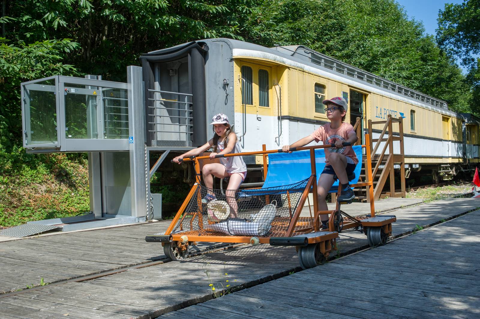In Bussière-Galant, at the reception of the espace Hermeline, a digital terminal identifies the major tourist offer in the Périgord-Limousin region. The Park having wanted to highlight some of its particularities, by going to the old post train (from the railbike), you will find a scenography dedicated to outdoor activities.